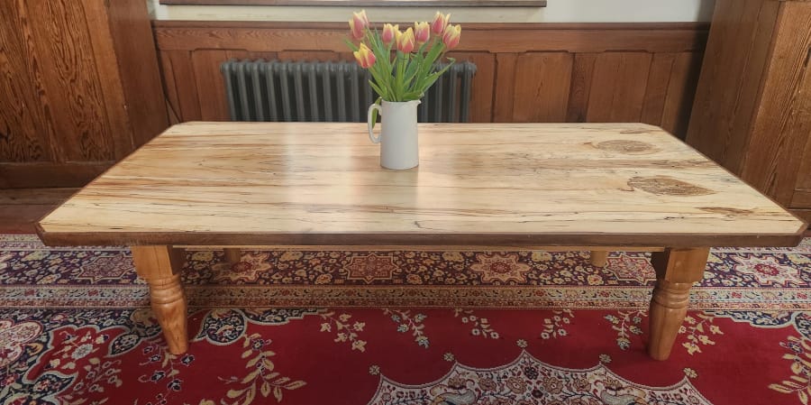 Made from: Spalted Beech - 100% Dimensions (WxLxH): 820mm x 1590mm x 435mm Legs: Hand turned by Michael Finished with Beeswax, made locally (by bees) collected by Phil G.